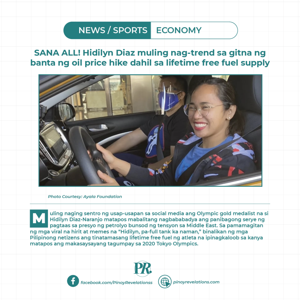 Muling naging sentro ng usap-usapan sa social media ang Olympic gold medalist na si Hidilyn Diaz-Naranjo matapos mabalitang nagbababadya ang panibagong serye ng pagtaas sa presyo ng petrolyo bunsod ng tensyon sa Middle East. Sa pamamagitan ng mga viral na hirit at memes na “Hidilyn, pa-full tank ka naman,” binalikan ng mga Pilipinong netizens ang tinatamasang lifetime free fuel ng atleta na ipinagkaloob sa kanya matapos ang makasaysayang tagumpay sa 2020 Tokyo Olympics.